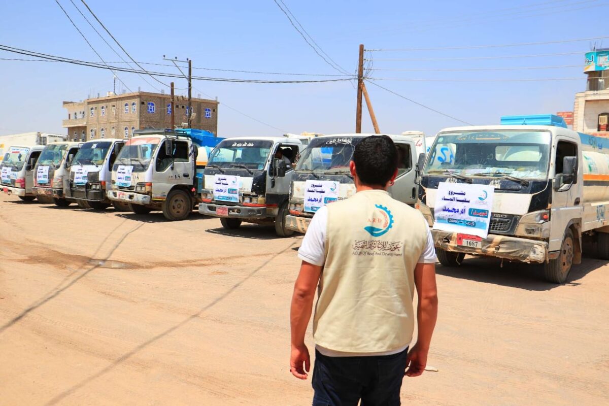 توزيع مياه الشرب في مخيمات النزوح – اليمن – مأرب